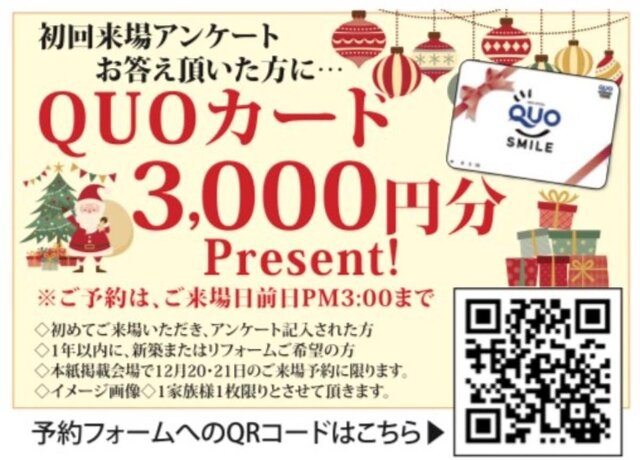 同日10:00~17:00の開催で、今回ご来場いただいた方にはQOUカード3,000円プレゼント♪