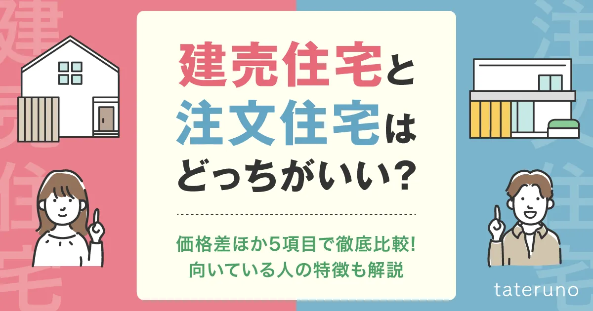 「建売住宅」と「注文住宅」の価格差をはじめ、住まい選びで重要な5項目を比較し、どちらが自分に向いているのかを解説します。住宅の購入に向けて迷っている方はぜひ参考にしてください。 -
