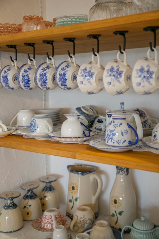 Kさんのコレクションのアンティーク食器を飾る棚を造作。ティーカップをフックにかけて収納するというKさんのアイディアを同社が具現化した。