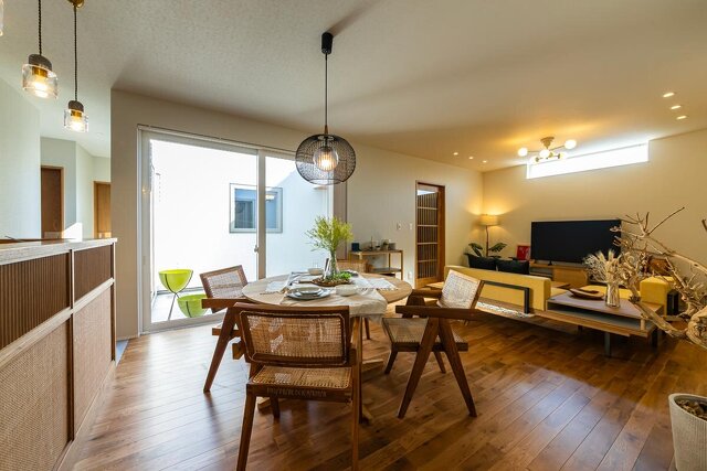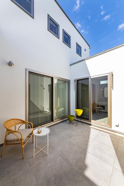 中庭を囲むように住空間が配置されたロの字型のプランによる、外部の視線を気にせずのんびりと寛げるプライベート空間も魅力だ。