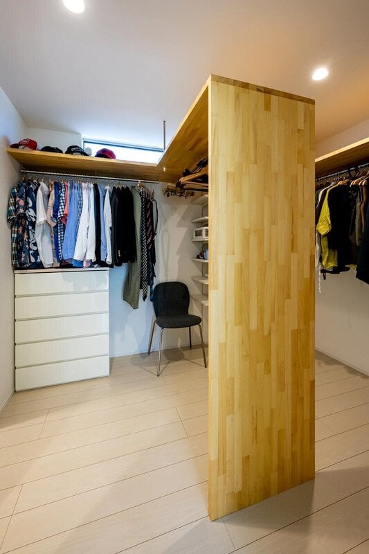 収納する衣類に合わせて造られた造作収納が便利。