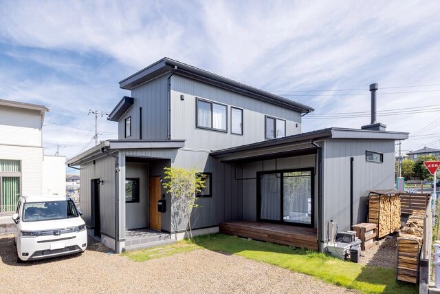 新築、平屋、狭小地・変形地、家事がしやすい、エクステリアにこだわり、ZEH(ゼッチ)、トリプルガラス、アイランドキッチン、土間収納、ウォークスルークローゼット、アウトドアリビング、造作家具・建具、太陽光発電システム、木造軸組工法