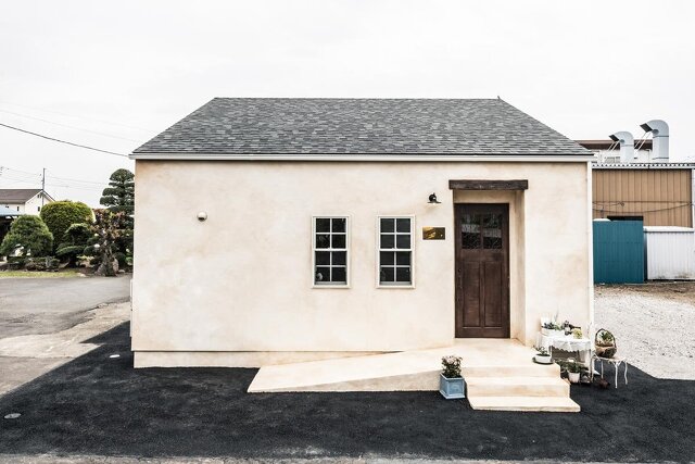 外壁は全て塗り壁で仕上げたほか、深い味わいを生む洋風瓦に木製のオーバースライダーシャッター。ここが日本であることを忘れてしまいそうなほどの景観が広がる。
