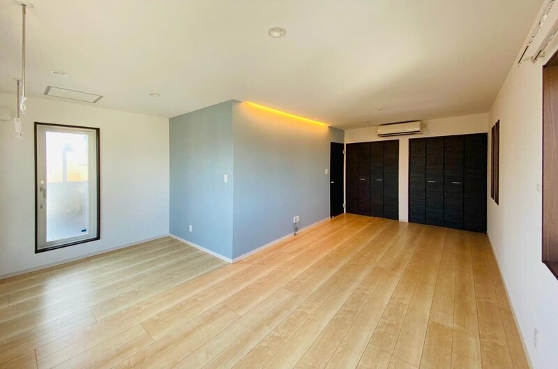 12.3帖の広々とした寝室には、雰囲気を高める間接照明を設置。優しい光が心を落ち着かせてくれ、心地良く眠りにつけそう。