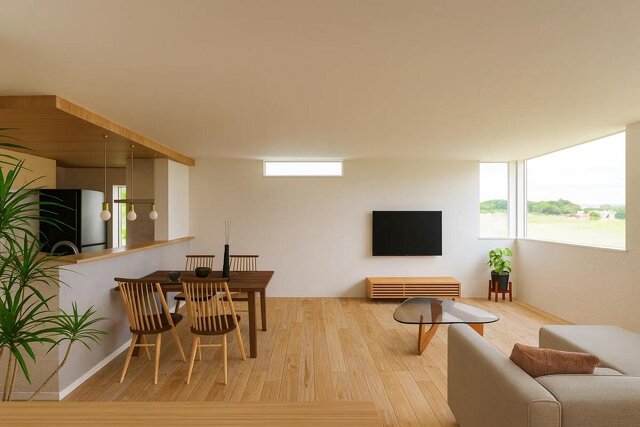 ■立地を生かし、名取川の土手を望むことができる明るく開放的な2階リビング。