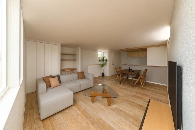 ■家族それぞれが思い思いの時間を過ごすことのできるLDKで、家族や愛犬の存在を常に感じることができる。