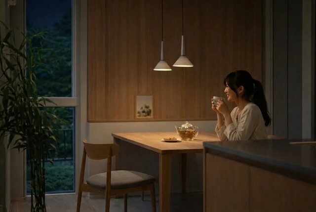 夫は書斎で自分の時間を楽しみ、私はソファで温かいお茶を一口。お互いの気配を感じつつも、一人の人間に戻れるこの絶妙な距離感が、この家の一番の魅力かもしれません。