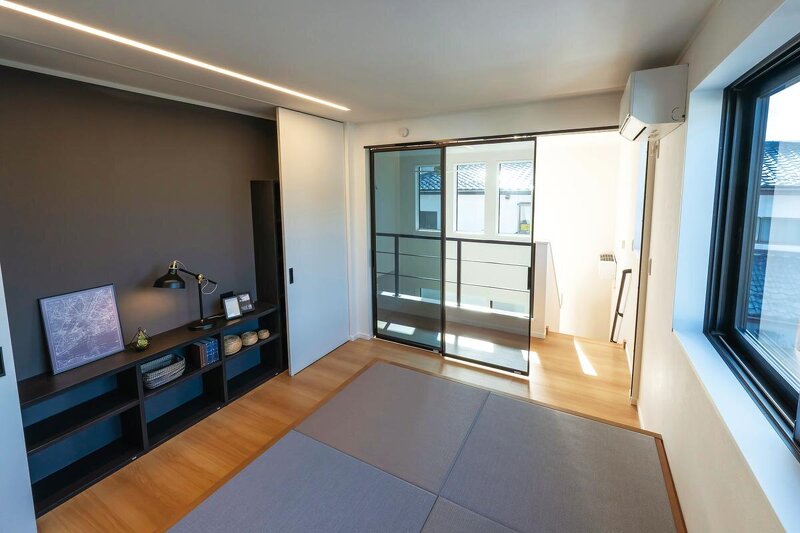 小上がり畳を備え、寝室としても使える2階のフリースペース。2階には他、遮音ドア付きのゲーミングルームも設け、それぞれが自分時間を心地よく楽しめる。