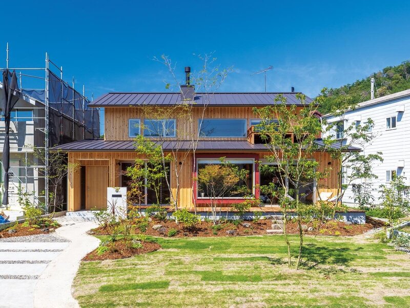 新築、2階建て、景色・景観を楽しむ、エクステリアにこだわり、観葉植物・ガーデニング、長期優良住宅、断熱等級6、HEAT20 G2、パッシブデザイン、耐震等級3、木製サッシ、付加断熱、床下エアコン、熱交換換気、造作キッチン、アイランドキッチン、土間収納、吹き抜け、アウトドアリビング、造作家具・建具、自然素材をふんだんに使用、薪ストーブ・ペレットストーブ、木造軸組工法、UA値0.37、C値0.33、基礎断熱ネオマフォーム60mm、壁断熱セルロースファイバー120mm、屋根断熱セルロースファイバー300mm、サッシAPW430、330(YKK)、建築価格5400万円