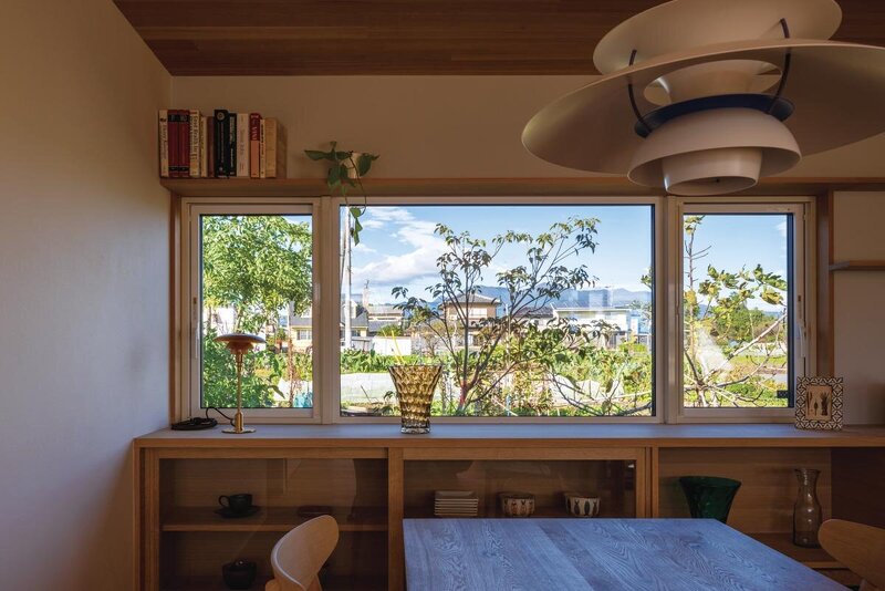 恵まれた景観を活かし、窓から赤城山が望めるよう配置を工夫したダイニング。日々の食事が、より心弾むものとなるはず。