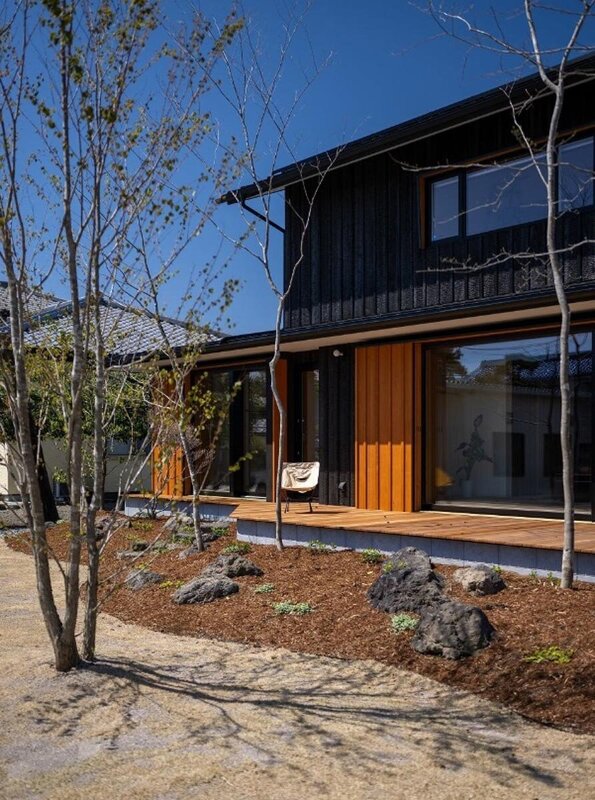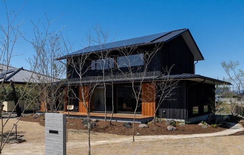 一枚一枚「手焼き」にこだわった天竜焼杉の外壁。杉板の表面を焼いて炭化した層をつくることで耐久性が向上。その風合いはひときわ目を引くほど重厚で、美しい。