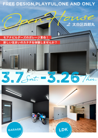 3/7(土)~26(木)開催 ガレージハウス完成見学会! ※完全予約制