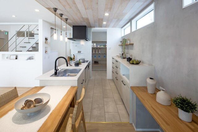 開放感あふれるおしゃれなキッチンや階段下のワークスペース、小上がり和室などが見どころ。家事や子育てのしやすさにこだわった設計や、全館空調による住まいの快適性もぜひご体感ください。