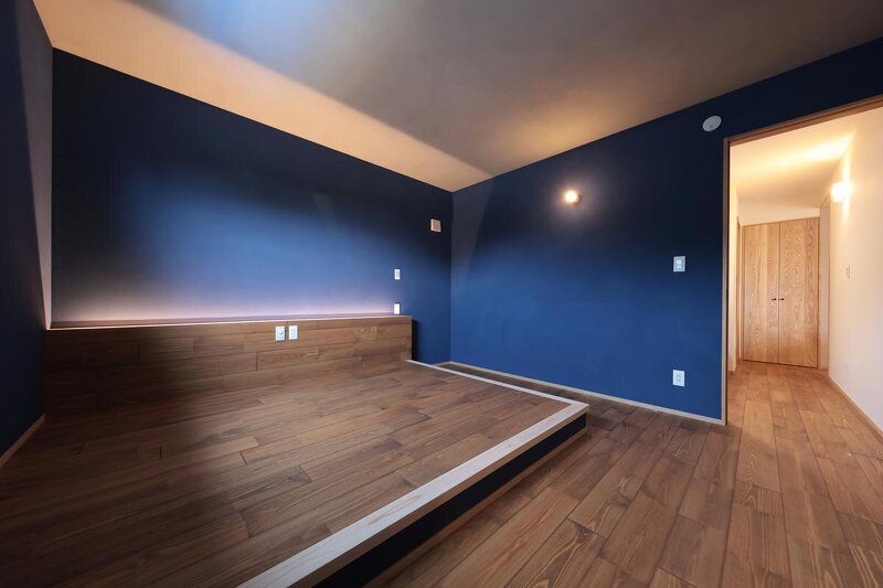 造作のベッドスペース。ヘッド部分の間接照明とダークな塗り壁の融合が光る。最終金額は予算を少しオーバーしたが、それ以上に沢山の付加価値のある住まいをリノベで実現。