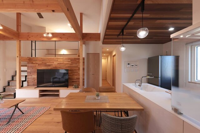 デザイン住宅、平屋、大黒柱・梁の現し、吹き抜け、ガレージ、ZEH(ゼッチ)、長期優良住宅、断熱等級6、HEAT20 G2、耐震等級3、きれいな空気環境