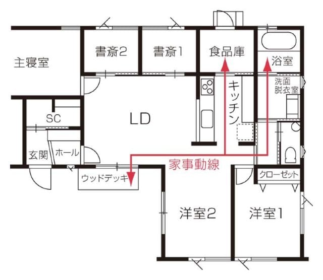 家事の負担が大きい水回りをまとめ、「いつ」「誰が」「どのように行動するか」など、家族のライフスタイルをイメージしながら効率の良い動線を計画。敷地面積で悩むことが多い平屋だが、シンプルで暮らしやすい間取りや小屋裏収納を活用することで、十分な駐車スペースとガーデンエリアも実現。家族の思い描いていた理想をカタチとした。