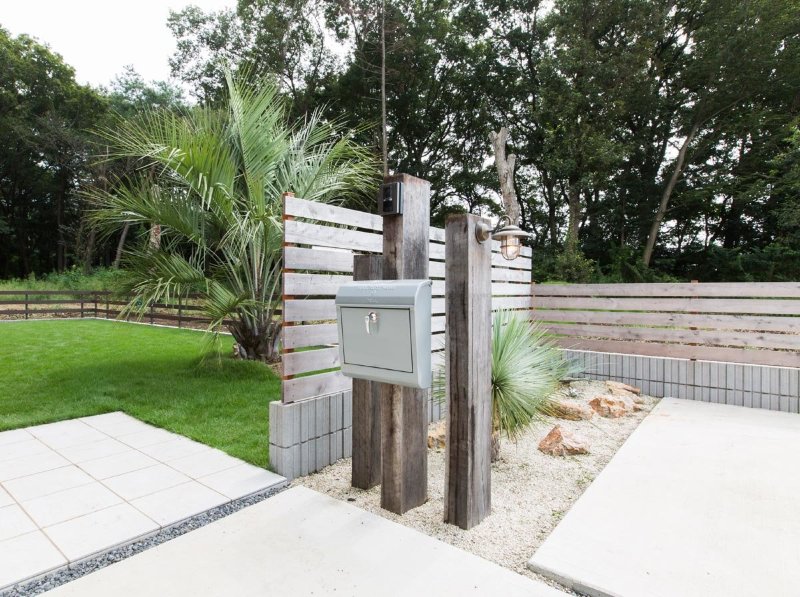 来客者を出迎える玄関アプローチ。建物と一体となることでカッコよく仕上がる。
