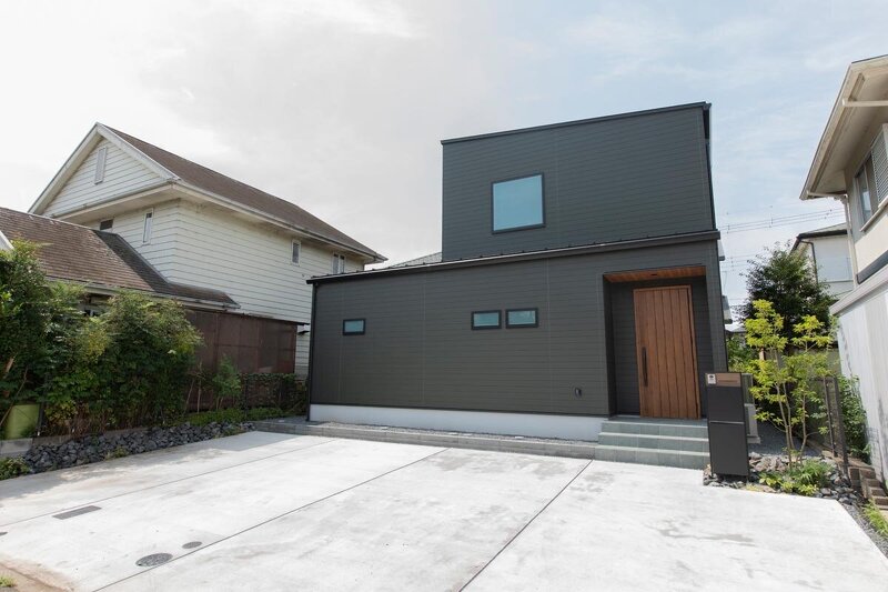 スッキリとしたフォルムが美しい外観デザイン。通り沿いに面することから窓は最小限に。