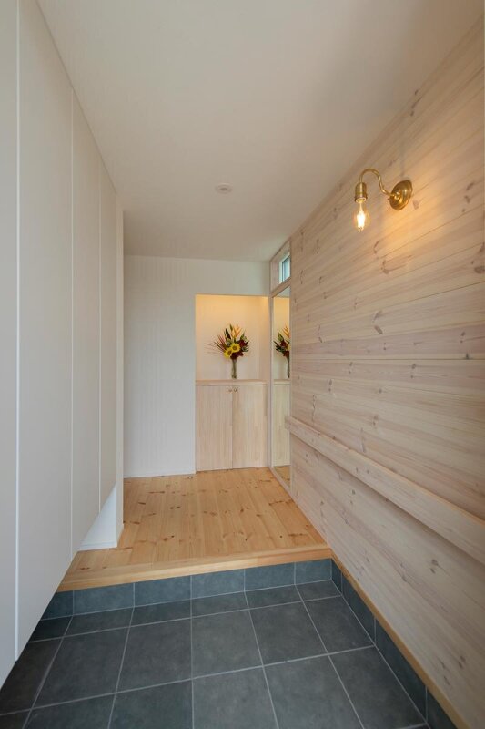 素材が持つ柔らかな雰囲気に満ちた玄関は、来客を迎える場として相応しい空気感。