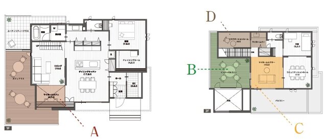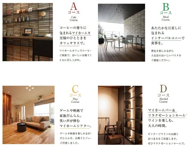 マイホームカフェやマイホームシアター、マイホームバーなど、ご家族のお一人お一人が気ままに過ごしていただける空間になっております。