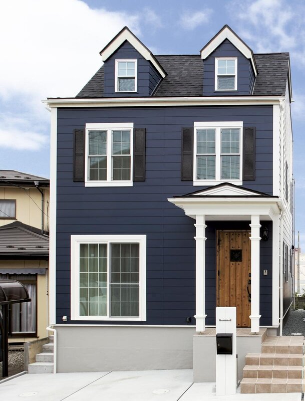 シャープな印象のラップサイディングが特徴の外観。サイディングは、フッ素入りで耐久性があり、30年はメンテナス不要という嬉しい仕様で「未来の安心」を届ける。