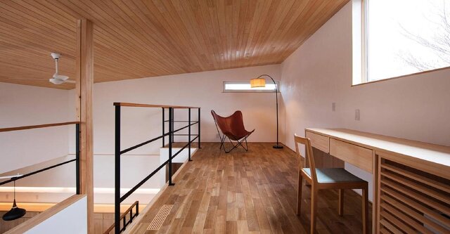 外壁に大谷石や杉材を配し、室内空間には地元産のひのきや杉の無垢材、漆喰壁や芦野石など自然素材をふんだんに使った心地よい暮らしのかたちができました。HEAT20G2グレードを超える優れた断熱性能。空調には床下設置型の24時間全熱交換型換気システムsumikaを採用。パッシブデザインをもとに設計した空間には柔らかい陽ざしとひのきの香りが漂い、一年中、四季を通じて温度差の少ない心地よい空気が流れます。長年無垢材の家づくりにこだわり続けてきた、maru-chon DESIGN officeが自信をもってご提案する「而今」の家づくりを是非、ご体感ください。