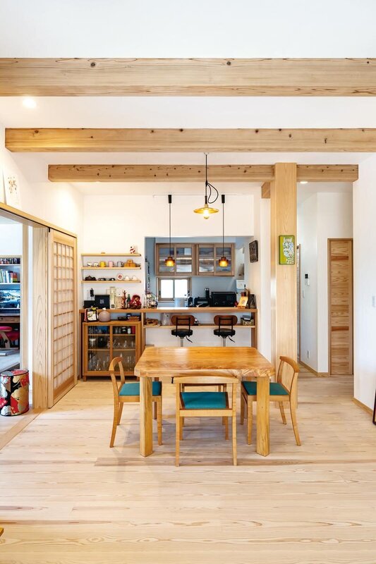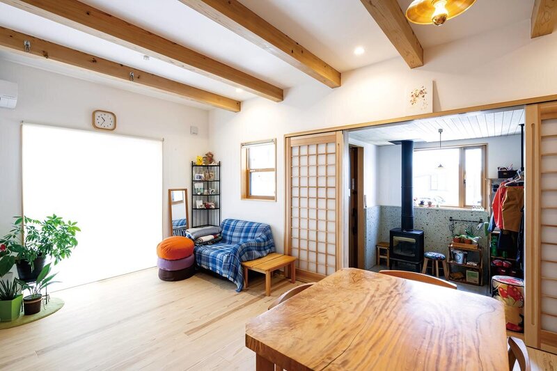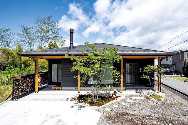 構造は全て国産の無垢材。集成材を使わない家づくりで、延床面積22坪というミニマムな平屋を新築したのは群馬県太田市の松浪建設。薪ストーブを備えた通り土間の先には書斎やロフトを備え、LDKは良質な無垢材や漆喰壁の心地よさに満ち溢れている。それぞれの素材による調湿効果も高く、キレイな空気感も実感できるという。