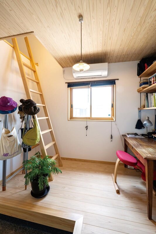 通り土間の先には土足のまま行き来可能な書斎が続く。梯子で昇り降りできる小屋裏を完備しており、男心をくすぐる秘密の隠れ家に。