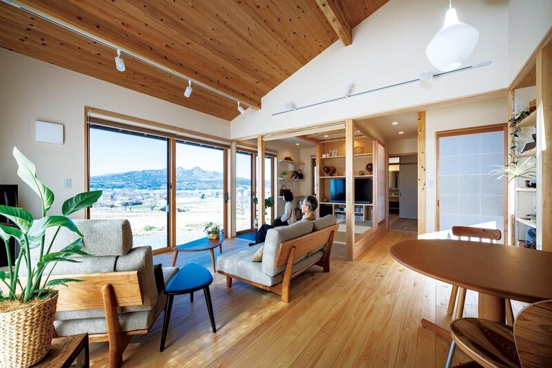 恵まれた風景を暮らしの一部として取り込むべく、南側に大きな掃き出し窓を設置。それでも高気密・高断熱仕様にてUA値=0.38、C値=0.3という優れた数値を記録。