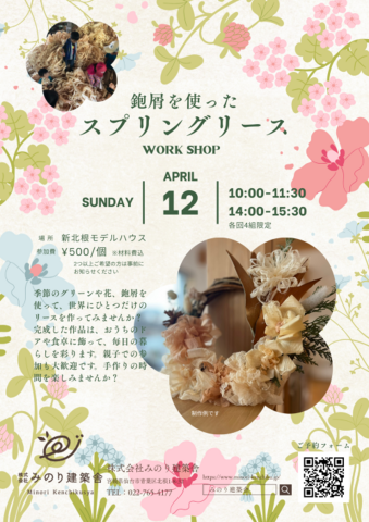 4/12(日)開催「鉋屑を使ったスプリングリース」WORK SHOP