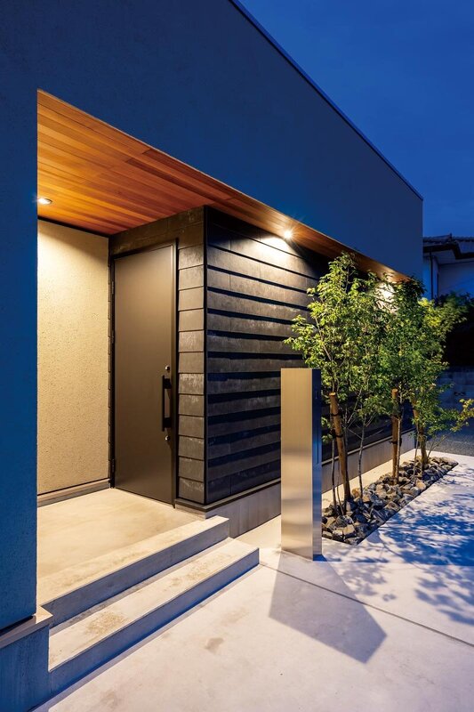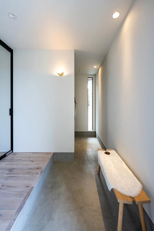 壁の「余白」が大きければ、それだけ照明の灯が強調され、より映える。シンプルさを追求した玄関ホール。
