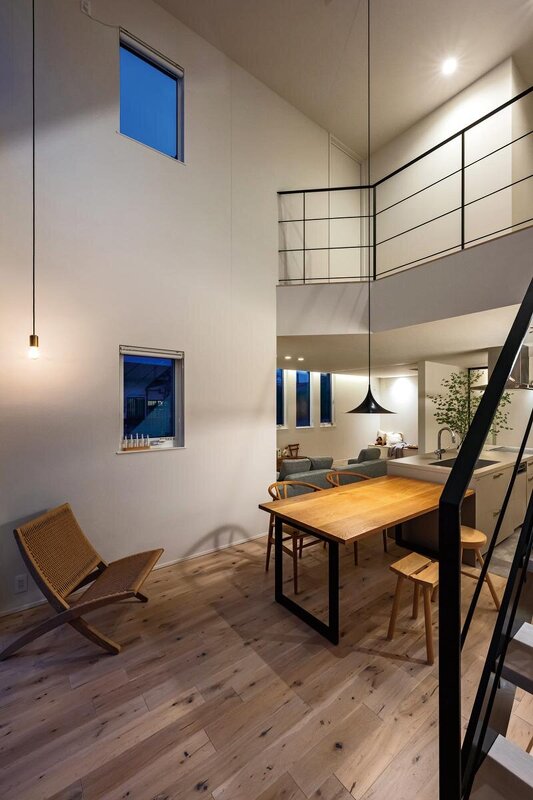 ヌックは家族と同じ空間に居つつ寛いだり本を読んだり一人の時間を楽しむための+αのスペース。コンパクトな吹き抜けの天井からペンダントライトを吊るすアイデアは秀逸。