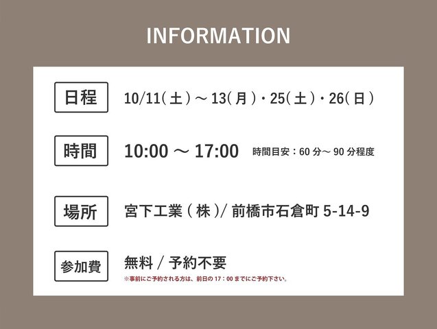 ※開催日直前のご予約は、建築会社へ直接お問い合わせください。