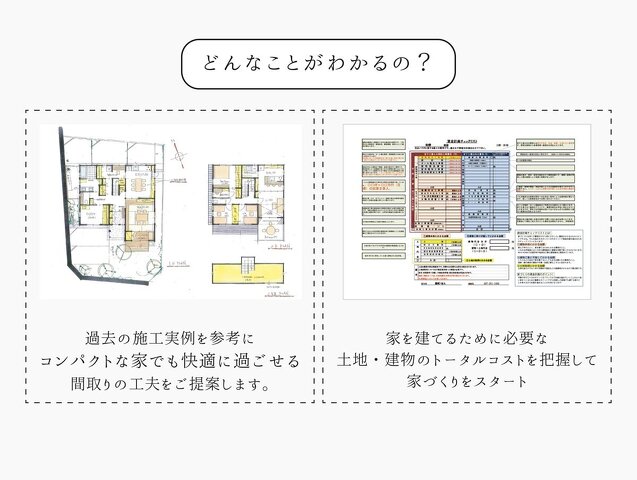 経験豊富なプランナーがお困りごとやご要望に合わせて、過去の施工実例を参考に間取りの工夫や資金計画についてご提案を行います!家づくりや将来の生活の不安を、一緒に整理してみませんか?まずはお気軽にご相談ください!