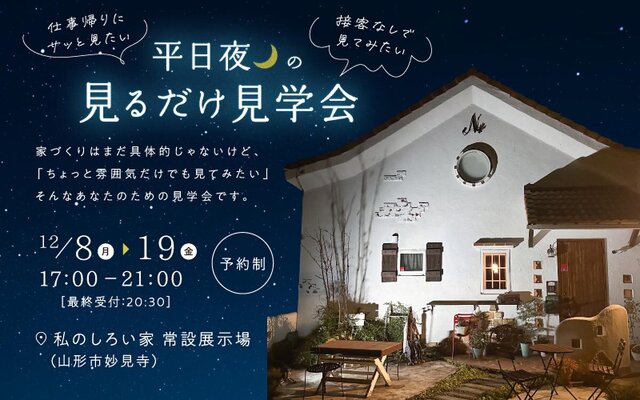 12/8(月)~19(金)の月~土開催 平日夜の見るだけ見学会 ※予約制