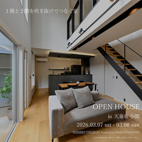 3/7(土)、8(日) 開催「1階と2階を吹き抜けでつなぐ家」OPEN HOUSE in 天童市小関