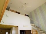 大胆な吹き抜けとスリット階段で