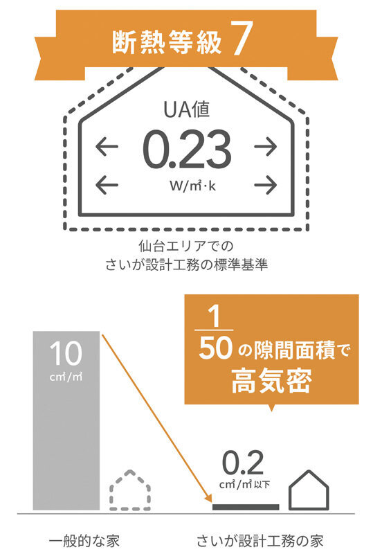 断熱等級7に加え、徹底した気密測定によりC値0.2を実現