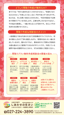 【しあわせの住まい】はお客様一人ひとりのライフスタイルに寄り添い、本当にご満足いただける家づくりを目指しています。この【間取り無料プラン作成相談会】が、あなたの理想の住まいを見つけるきっかけになれば幸いです。