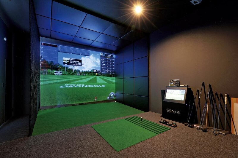 施主たっての希望で実現した趣味のゴルフを楽しむためのシミュレーションルーム。友人を自宅に招いてのラウンドは、人生をより豊かに彩るだろう。