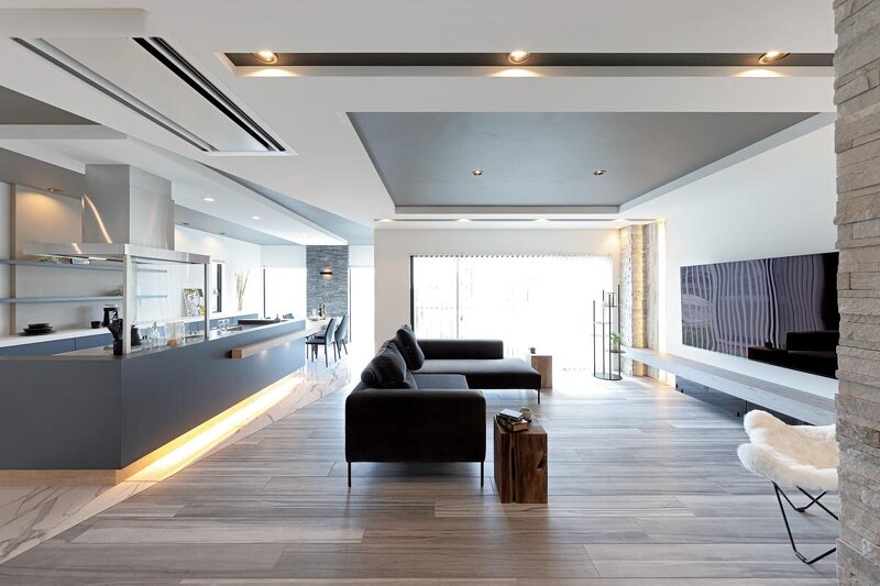室内はシブサワスタイルのデザイナーならではのホテルライクなデザイン。ホワイトにグレーカラー、そこに間接照明を合わせることは流行でもあるが、ご覧の通り別レベル。