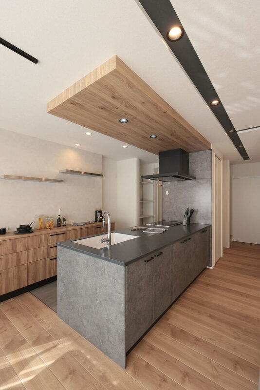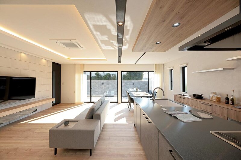 施主が求めた「安らぎ」や「寛ぎ」。その想いを踏まえつつ、優れたデザイン性で提案した上品な邸宅。テーマカラーは「グレー」そして「木の温もり」。過剰な色使いを避け、今はもちろん老後を迎えても、そこに住まう家族が以前と変わることなく空間に「馴染む」また「愛せる」ことを意識。ホテルライクやモダンとはひと味違う美しさをカタチに。