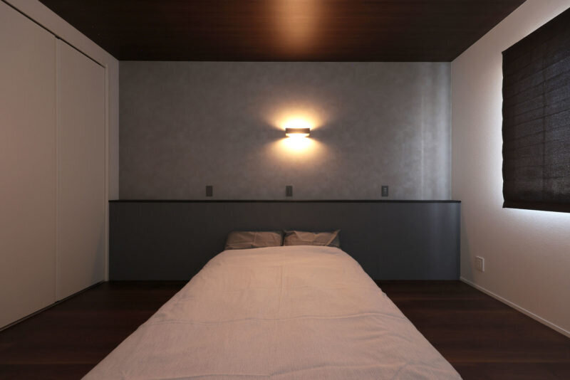 あえて明るさを抑えて「心地よい眠りにつけること」を追求した主寝室。LDKとは違い濃いめのグレーでコーディネート。