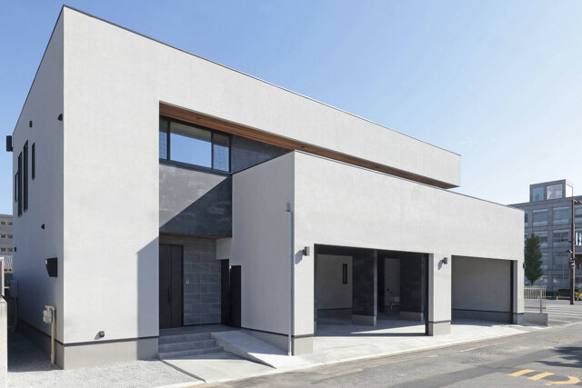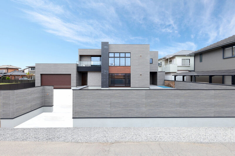 グレーをベースにウォールナットカラーを効果的に配色。シンプルな形状ながら凸凹のバランスによって存在感のある迫力とやりすぎない”丁度良い”シックモダンな外観に。