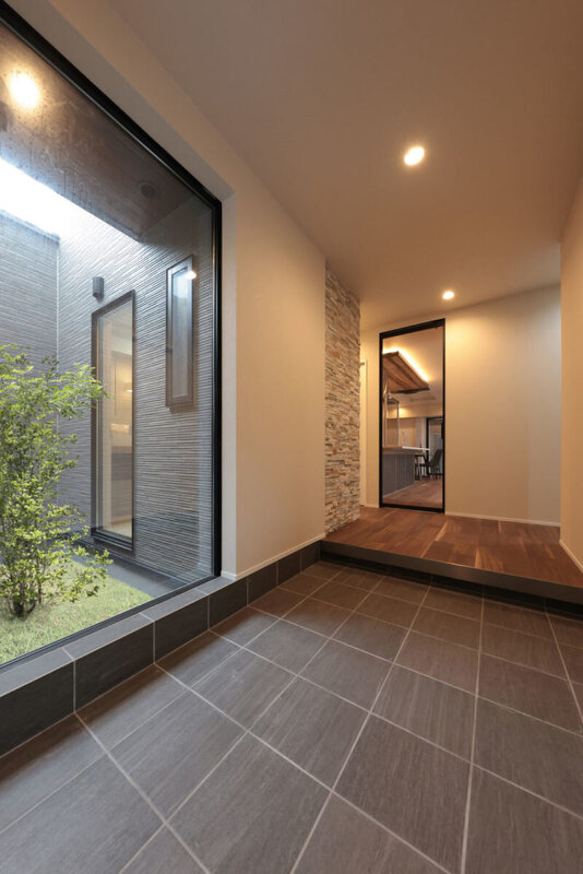 日々、家族や来客をもてなす玄関ホール。むしろ玄関というより、一つの部屋とも感じられる空間に。また、ガレージとも直接行き来ができる2WAY動線など利便性も考慮。