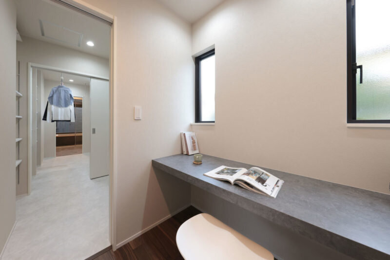脱衣室→ランドリールームと直線的に繋いだ動線の最後は、奥様の家事室。個室のためリモートワークにも使える。