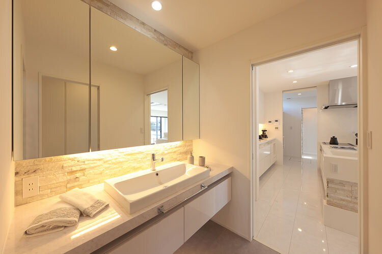 見る角度や方位によって様々な外観デザインの表情が窺える立地を活かしたシブサワスタイルの真骨頂ともいえる住まい。“ツギハギ”になることなく、“バランス良くセンス良くカタチ”にすることを今回も存分に表現。シンプルモダン・リゾート・ホテルライクをミックスした、デザイナーたちのデザインや設計に対する熱量が湧き出た住まい。