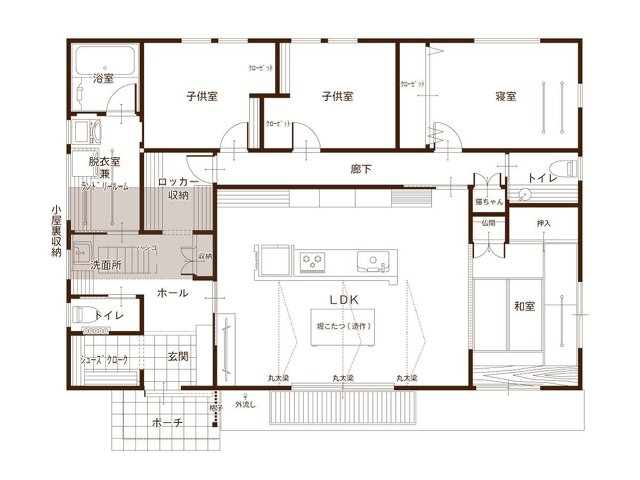 【足利市 完成現場見学会】丸太梁と掘りごたつの平屋~猫ちゃんと快適に暮らす30坪の和平屋~