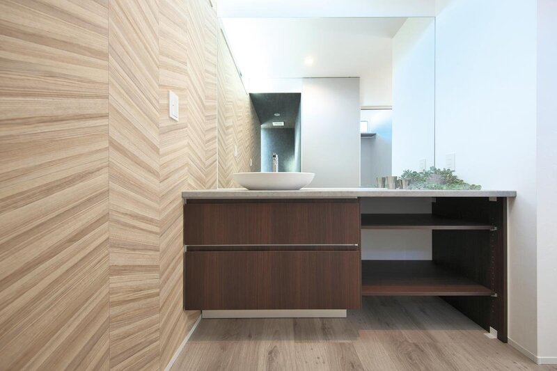 ラグジュアリー感あふれる洗面化粧台。ホテルを訪れたときのような「非日常感」が味わえる空間の一つ。