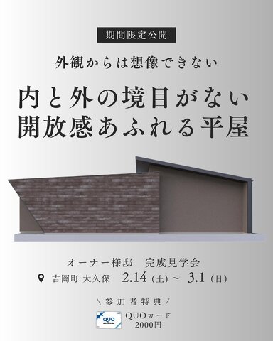 イベントオーナー様邸完成見学会 外観からは想像できない 内と外の境目がない解放感あふれる平屋